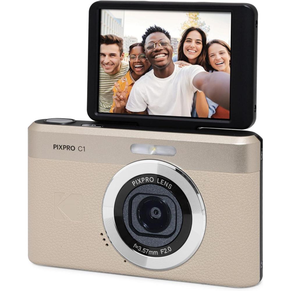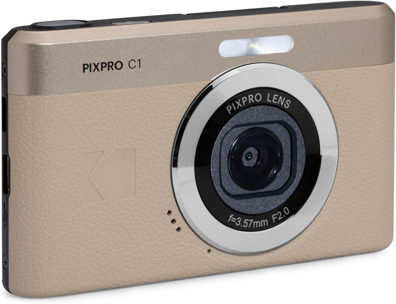 KODAK PIXPRO C1 Friendly Zoom Digital Camera – 13MP Compact Point and Shoot with 2.8” 180° Tilt LCD Flip Screen, Retro Vintage Design with 4X Zoom and 1080P Full HD Video for Travel, Vlogging, Black(Tan)